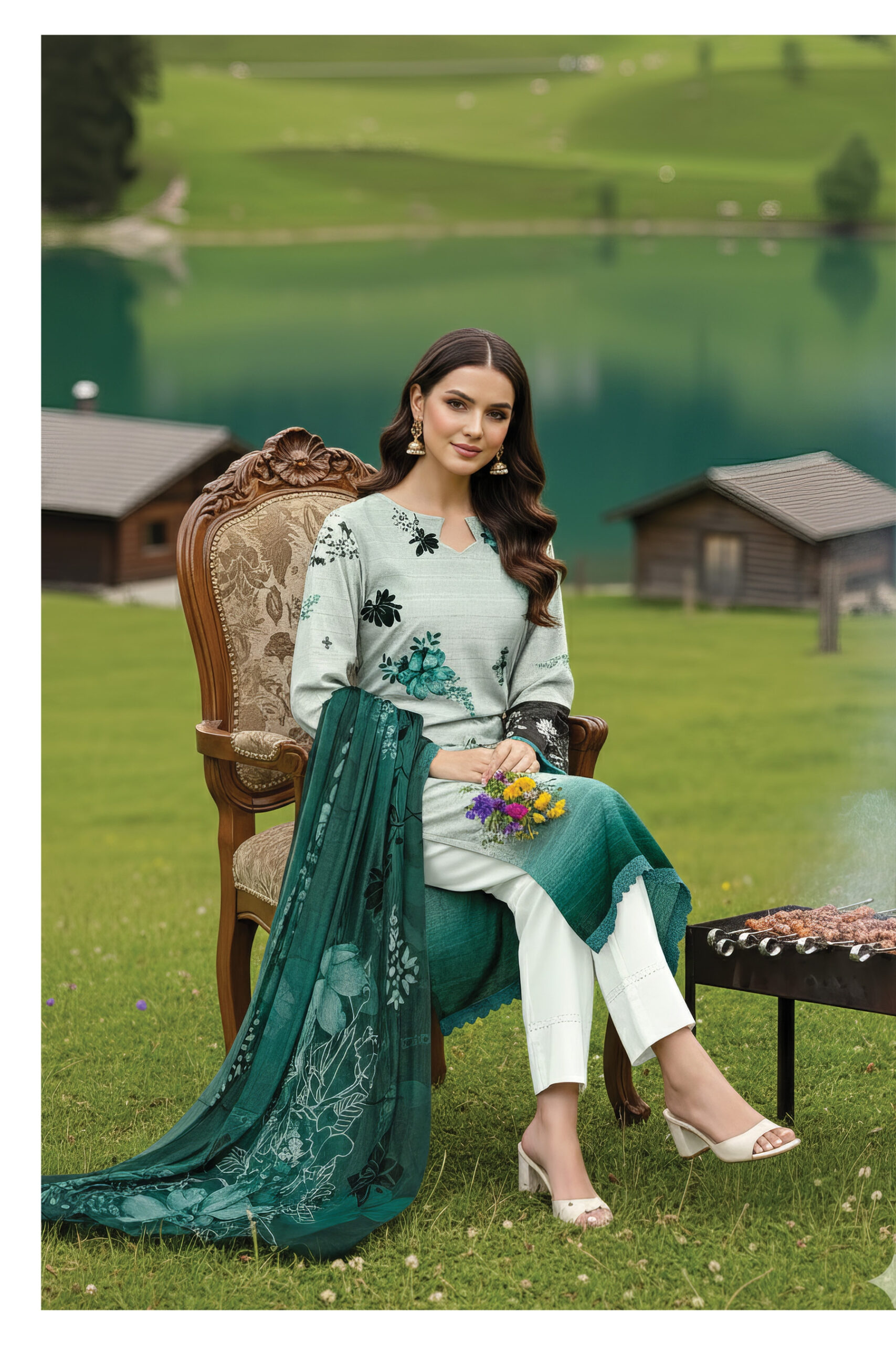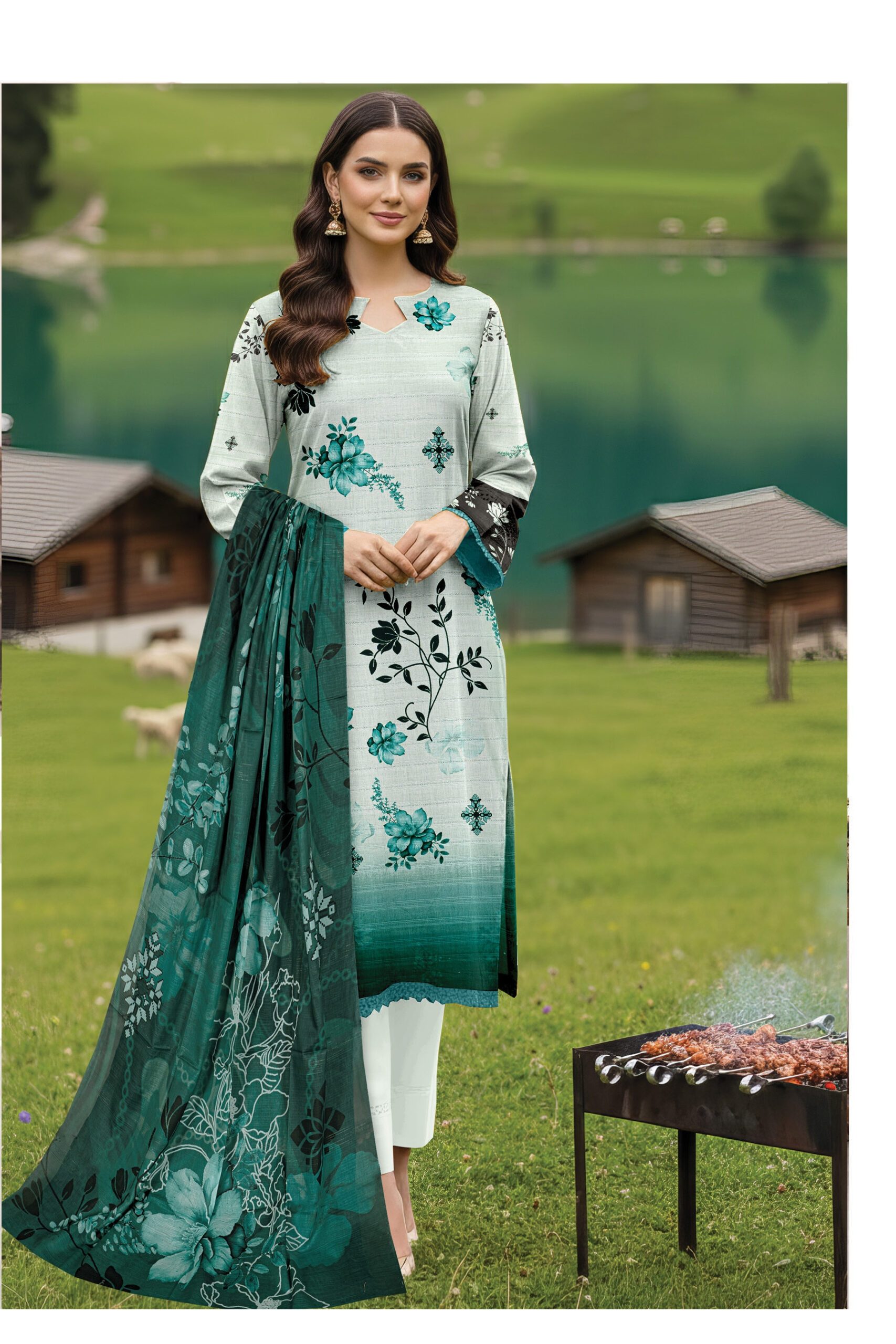 - Digital Lawn Embroidery Shirt (Unstitched)