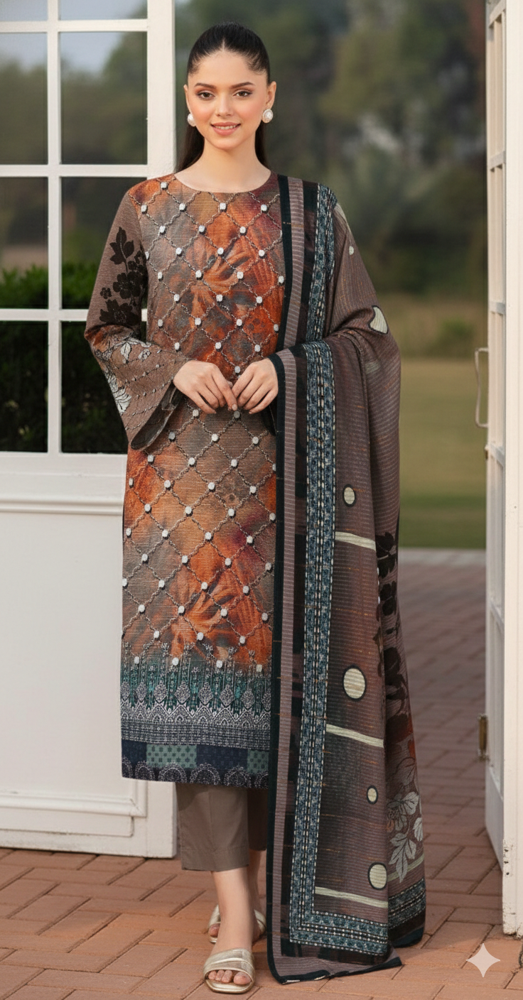 - Digital Lawn Embroidery Shirt (Unstitched)